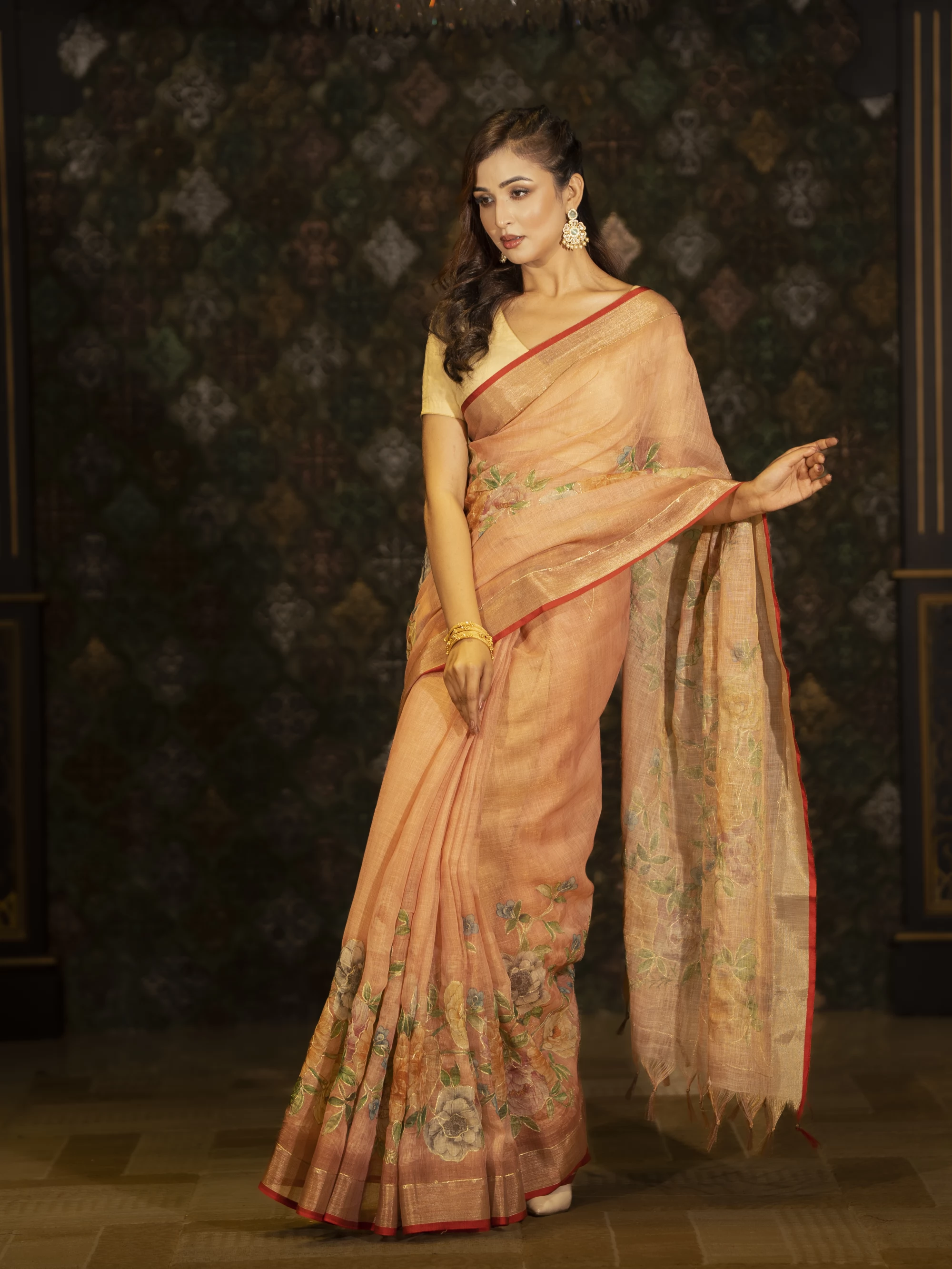 Gorgeous light peach colored casual wear cotton saree. This Saree is designed and crafted for your perfect