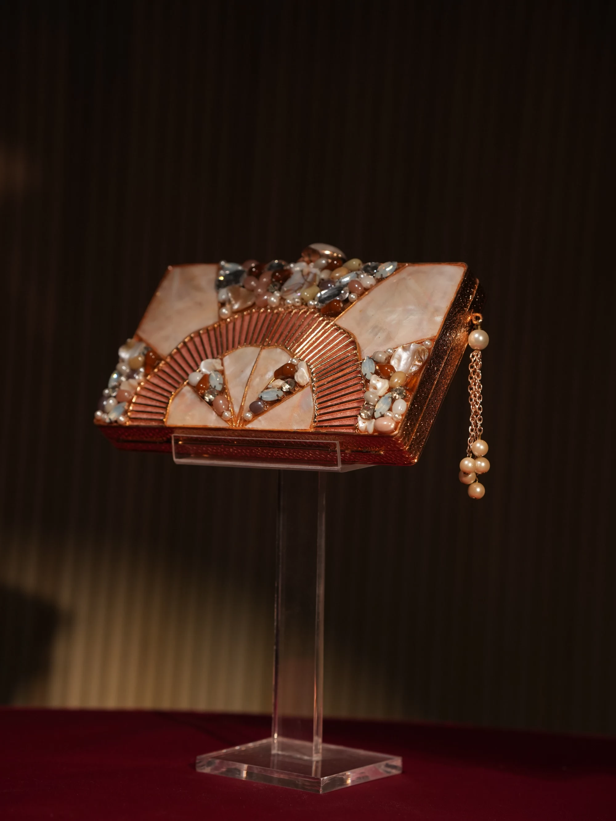 Glamorous natural shell and multi stone work purse. Perfect match with your every festive outfit.