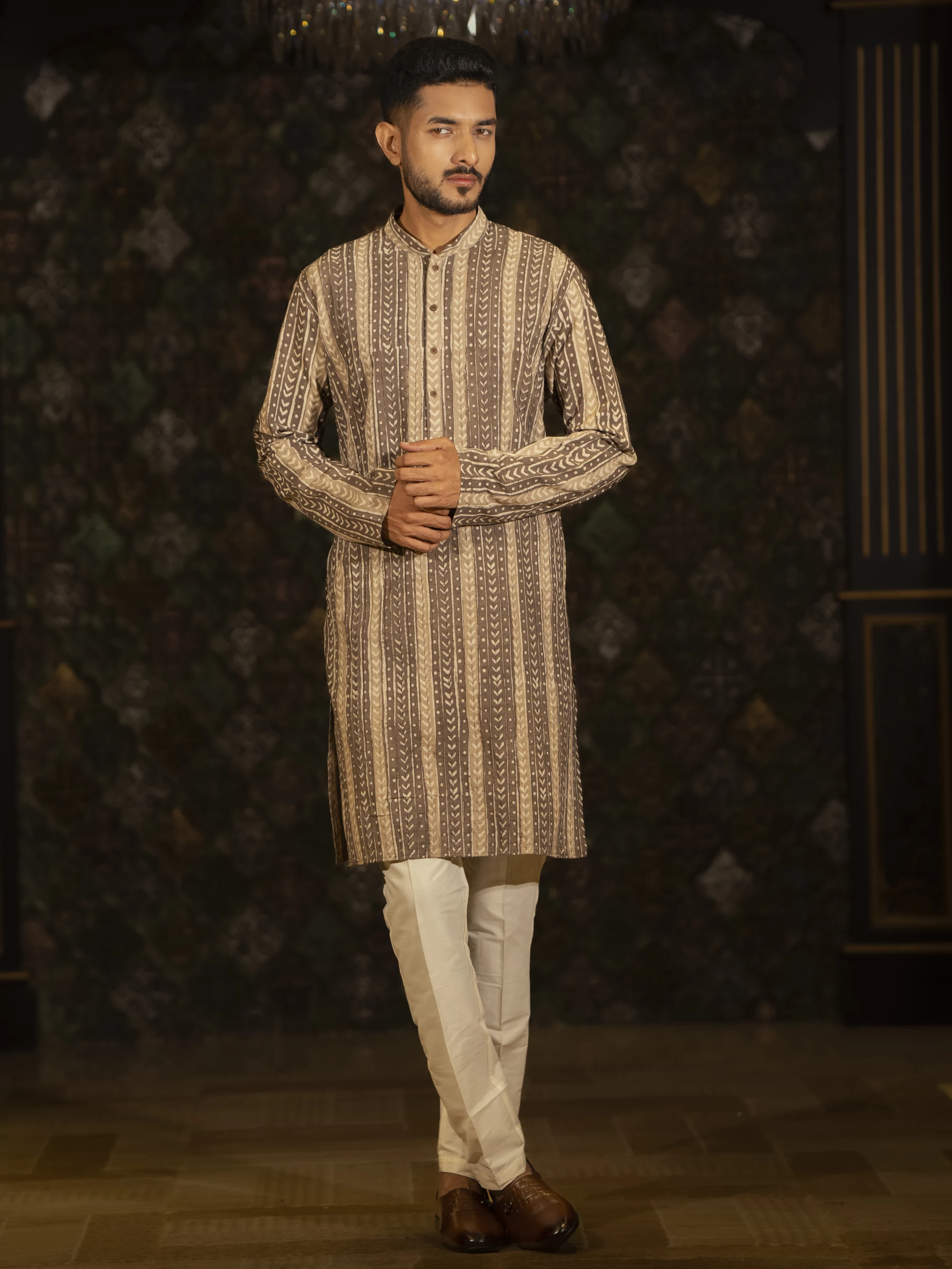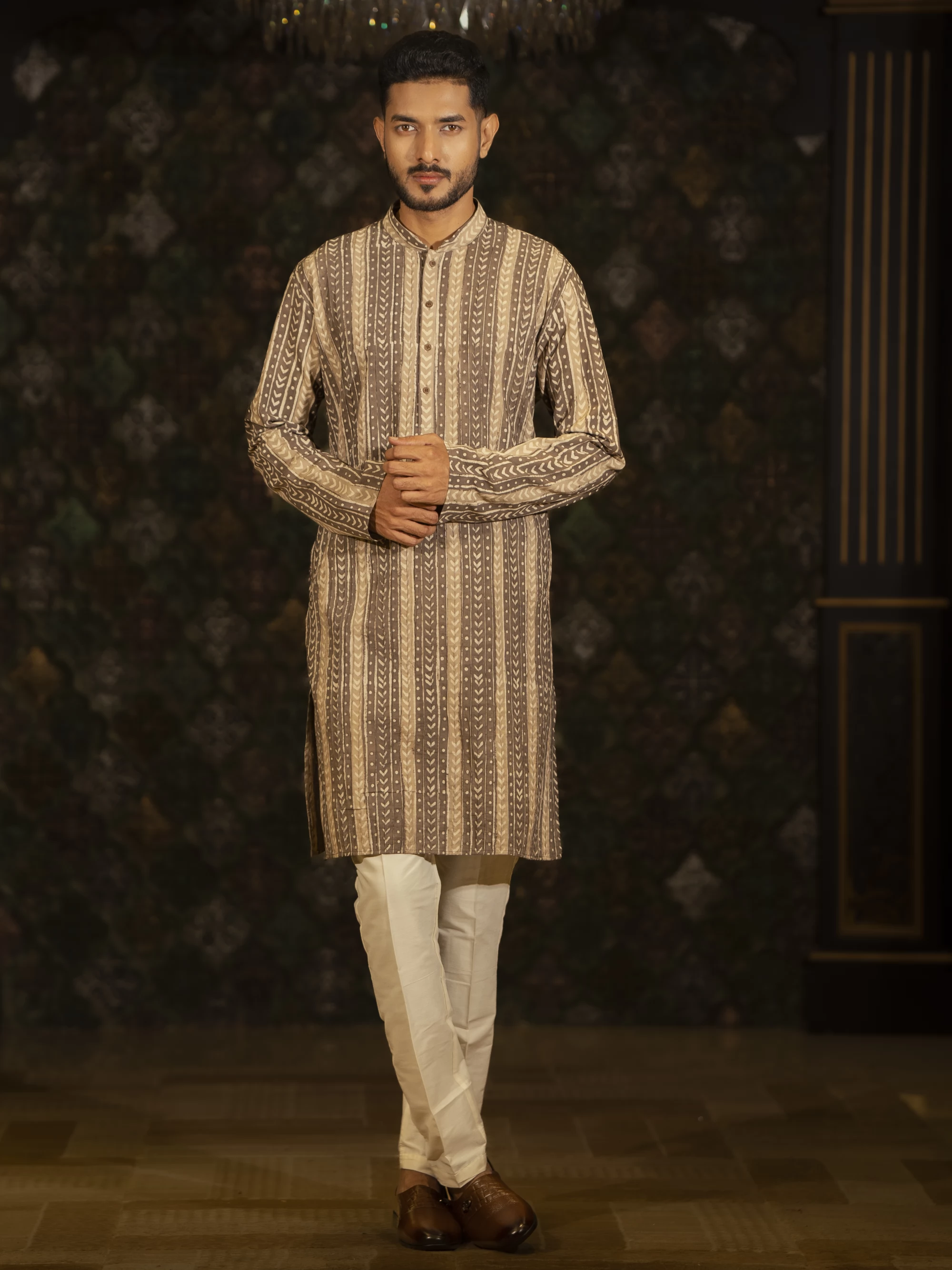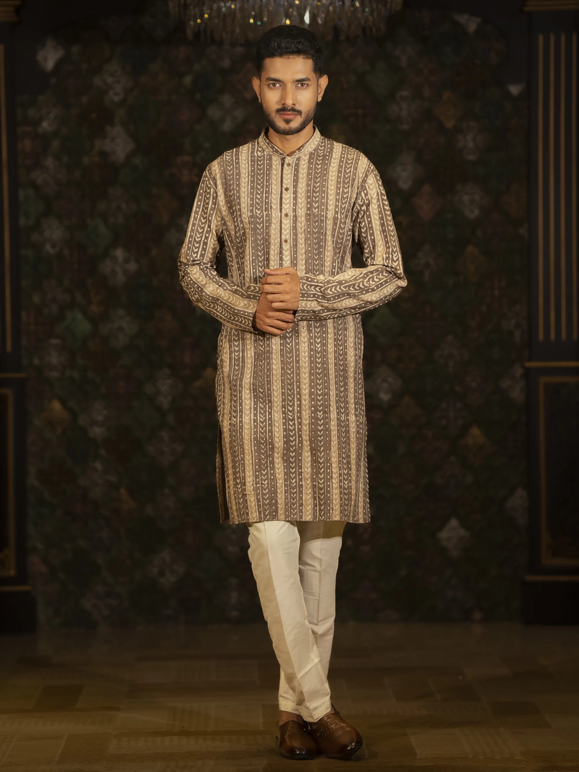 Chocolate Stripe Design Regular Fit Cotton Panjabi