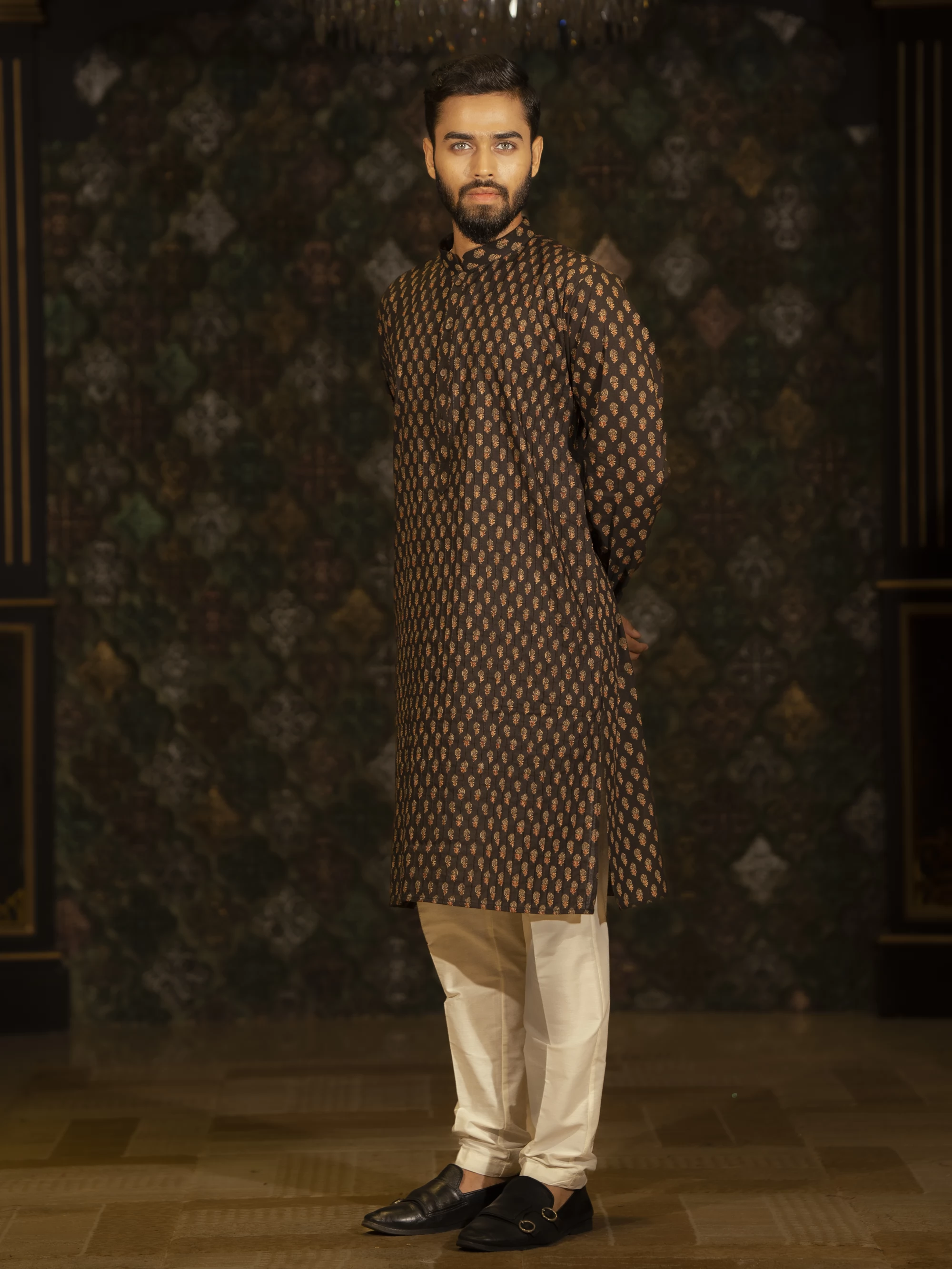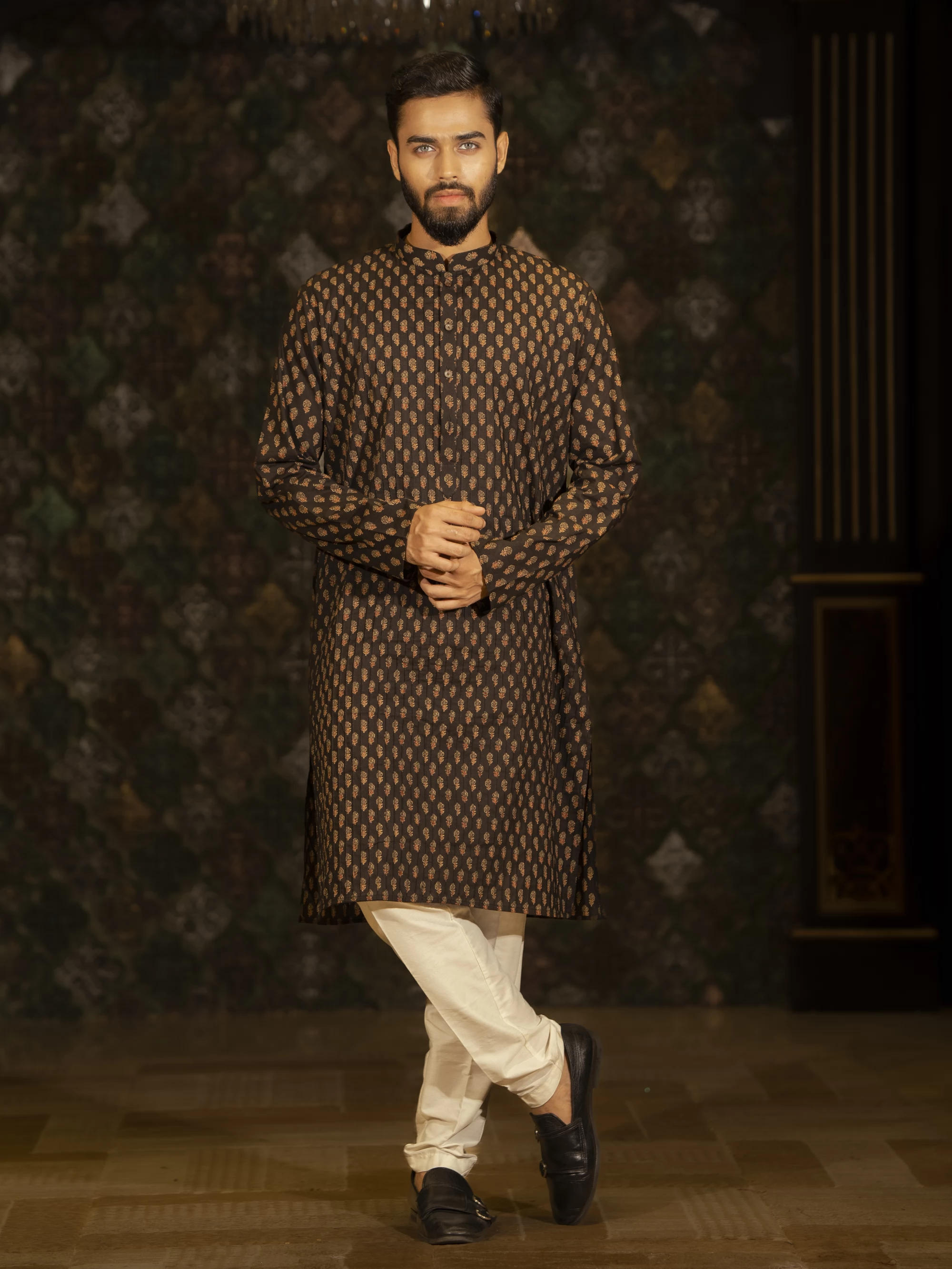 Black Printed cotton panjabi. A perfect blend of trend and tradition. The classic look of this panjabi enhance the fashion.