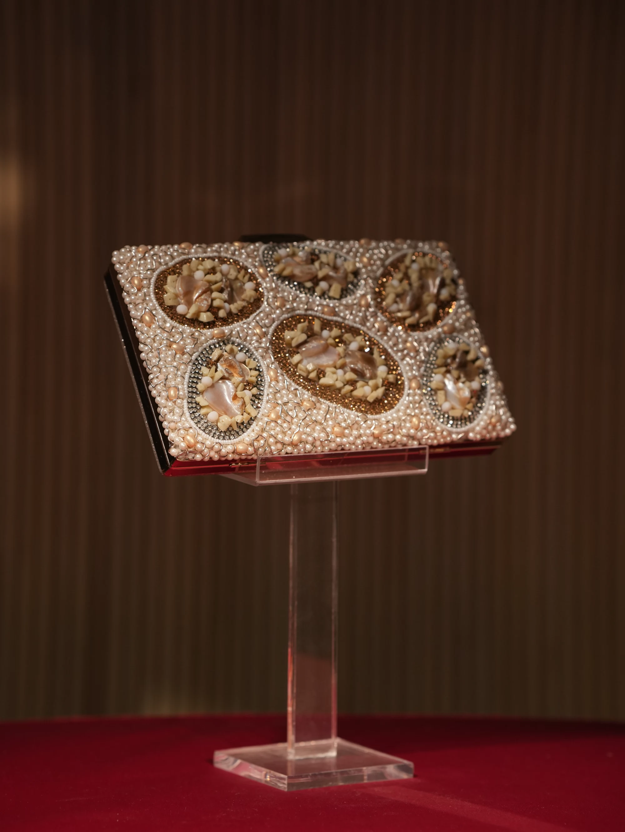 Tremendous looking pear,l zardozi & stone worked ladies purse, Your complete fashionable hand carrying purse, styled in vibrant color.