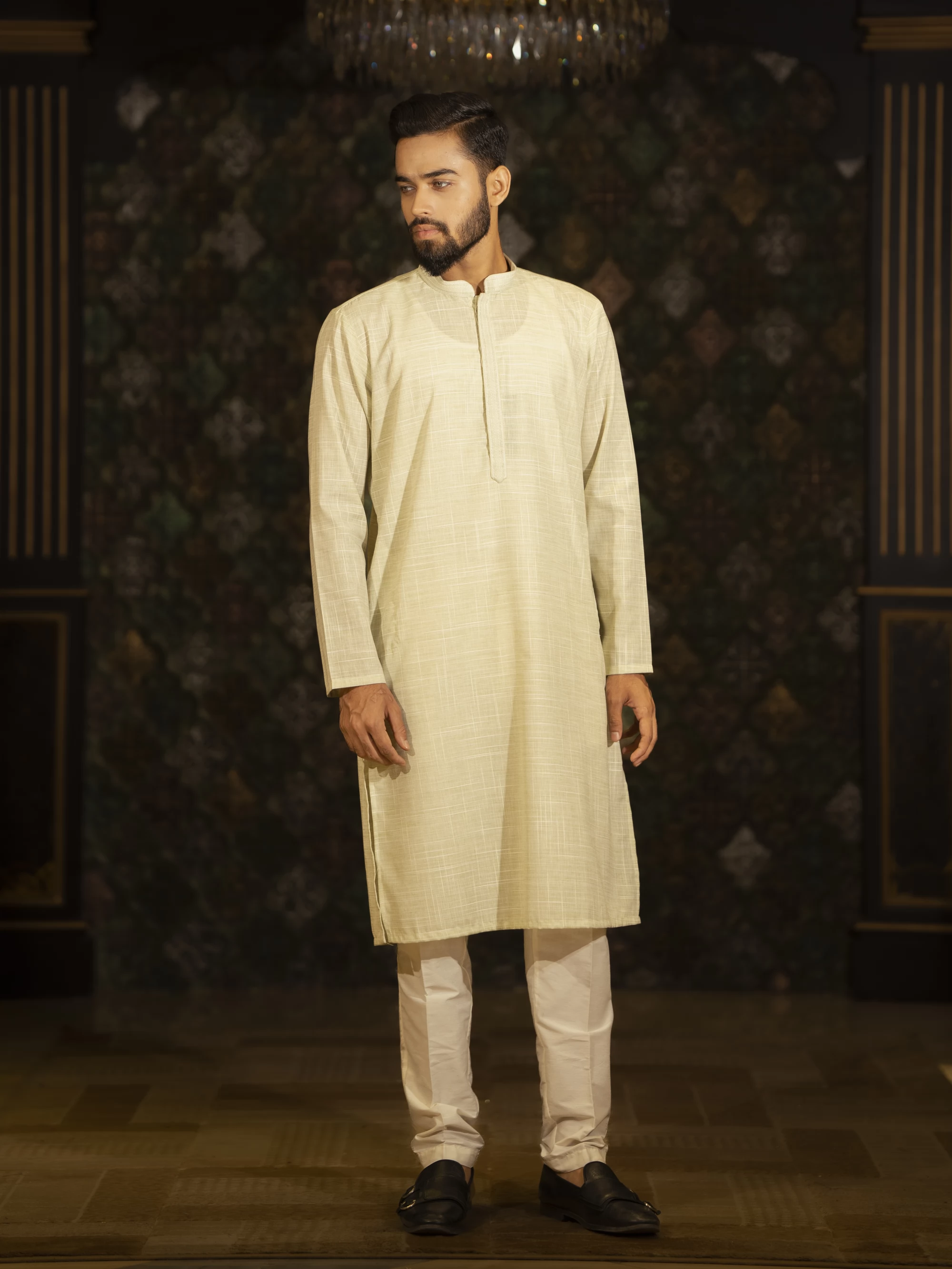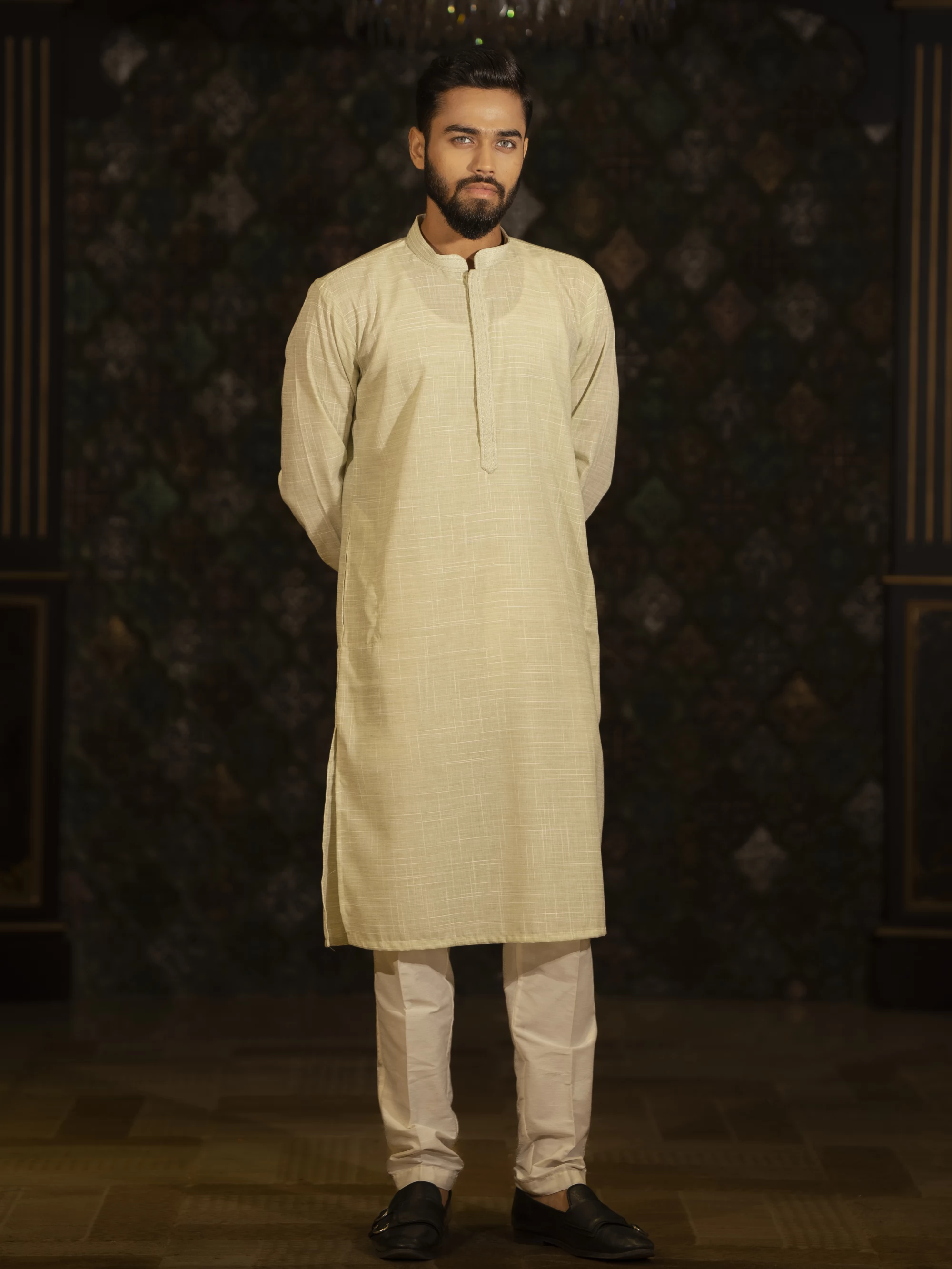 Light gray cotton panjabi in casual fitting. A perfect blend of tradition and trend, color accents of this panjabi enhance its festive appeal.