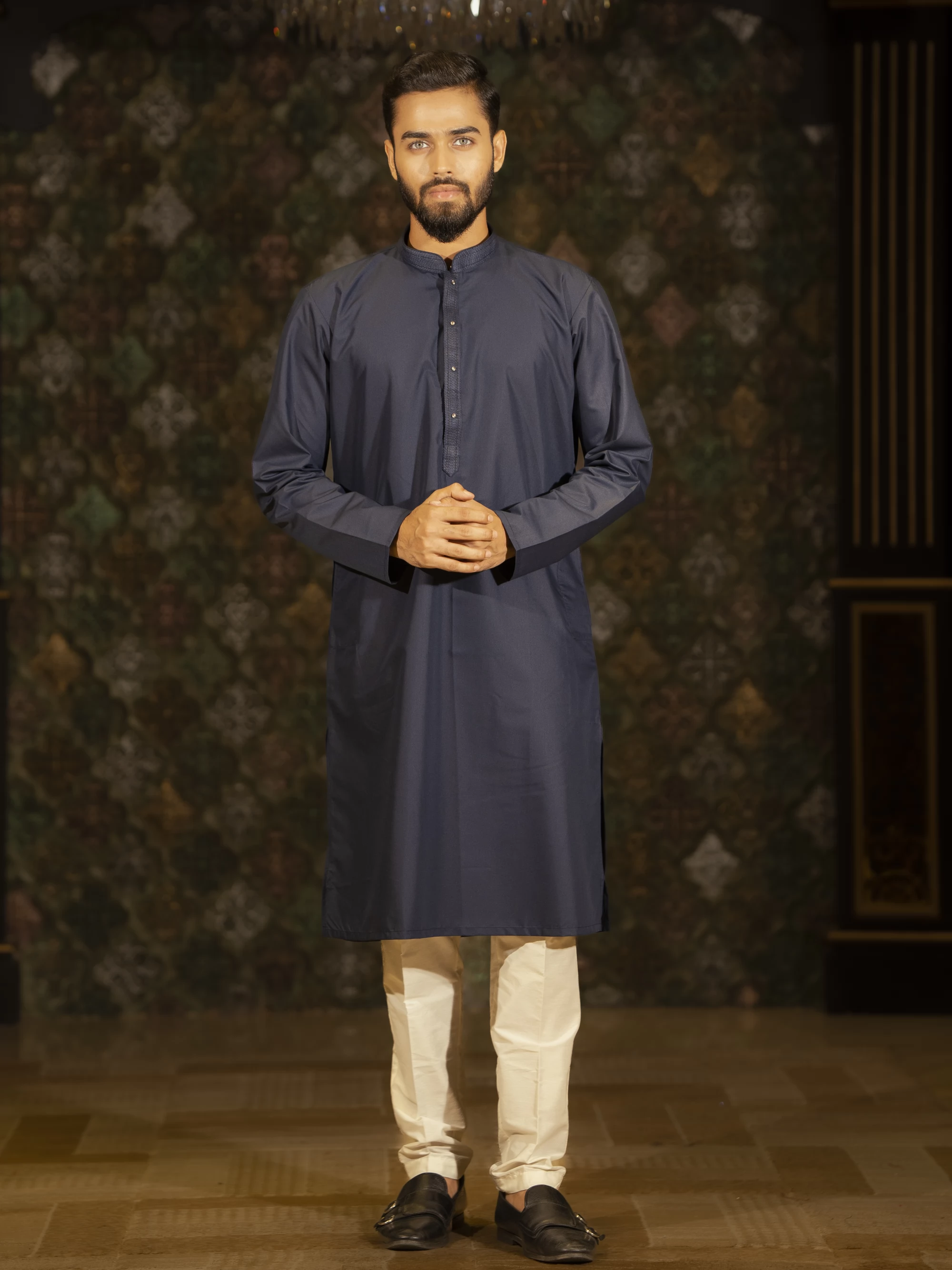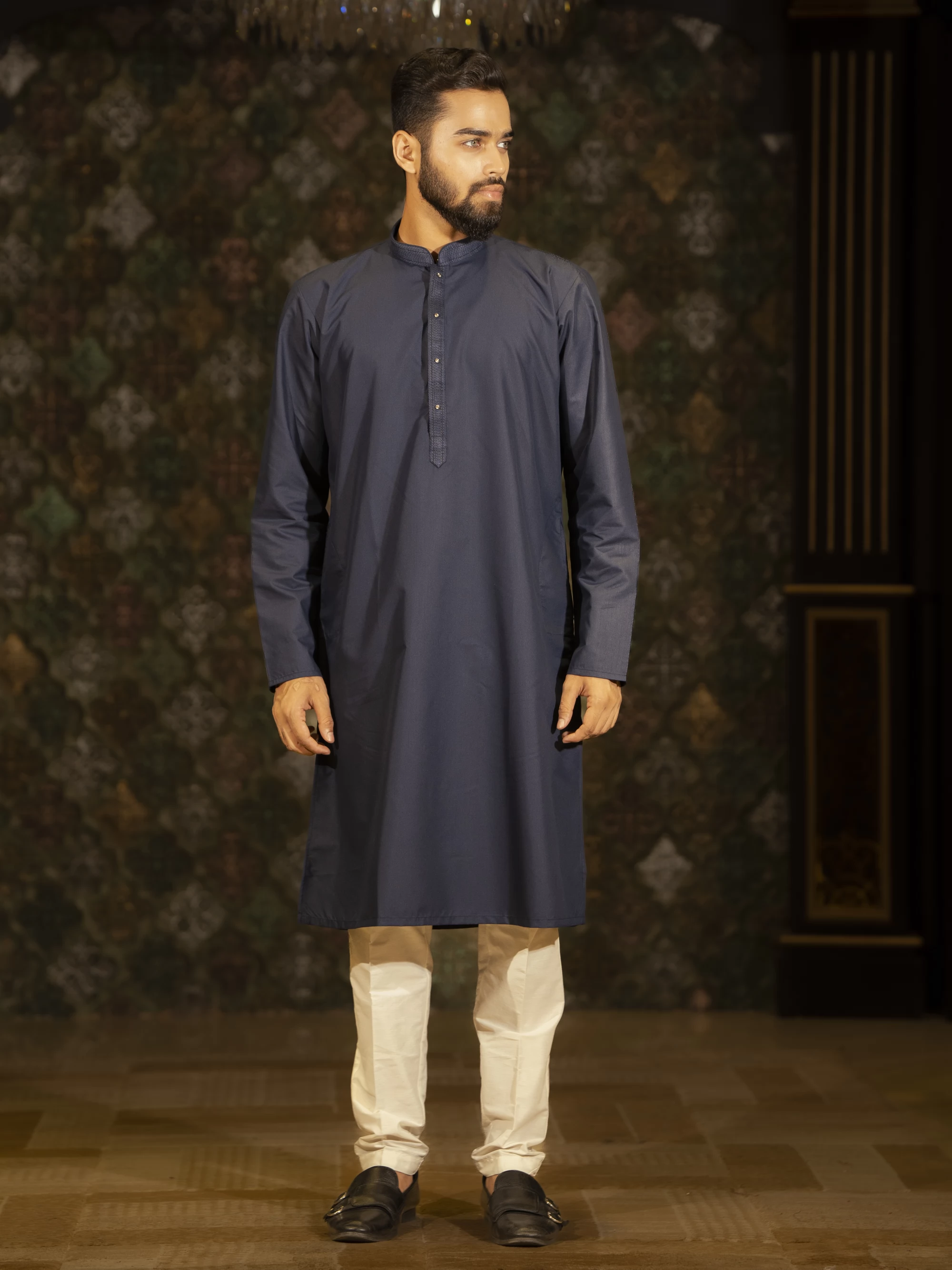 Gorgeous blue color casual fit silk panjabi, crafted and subtle design button work enhanced and accomplished the look of this panjabi. Your perfect Eid fashion attire.