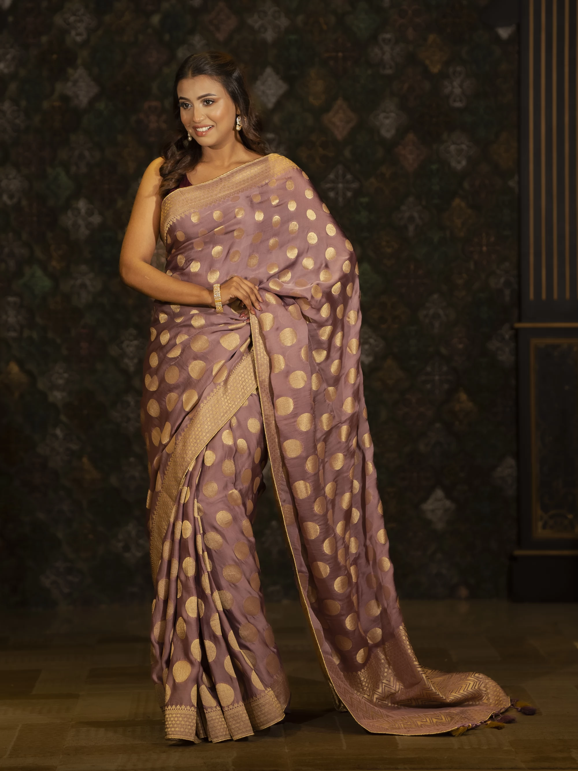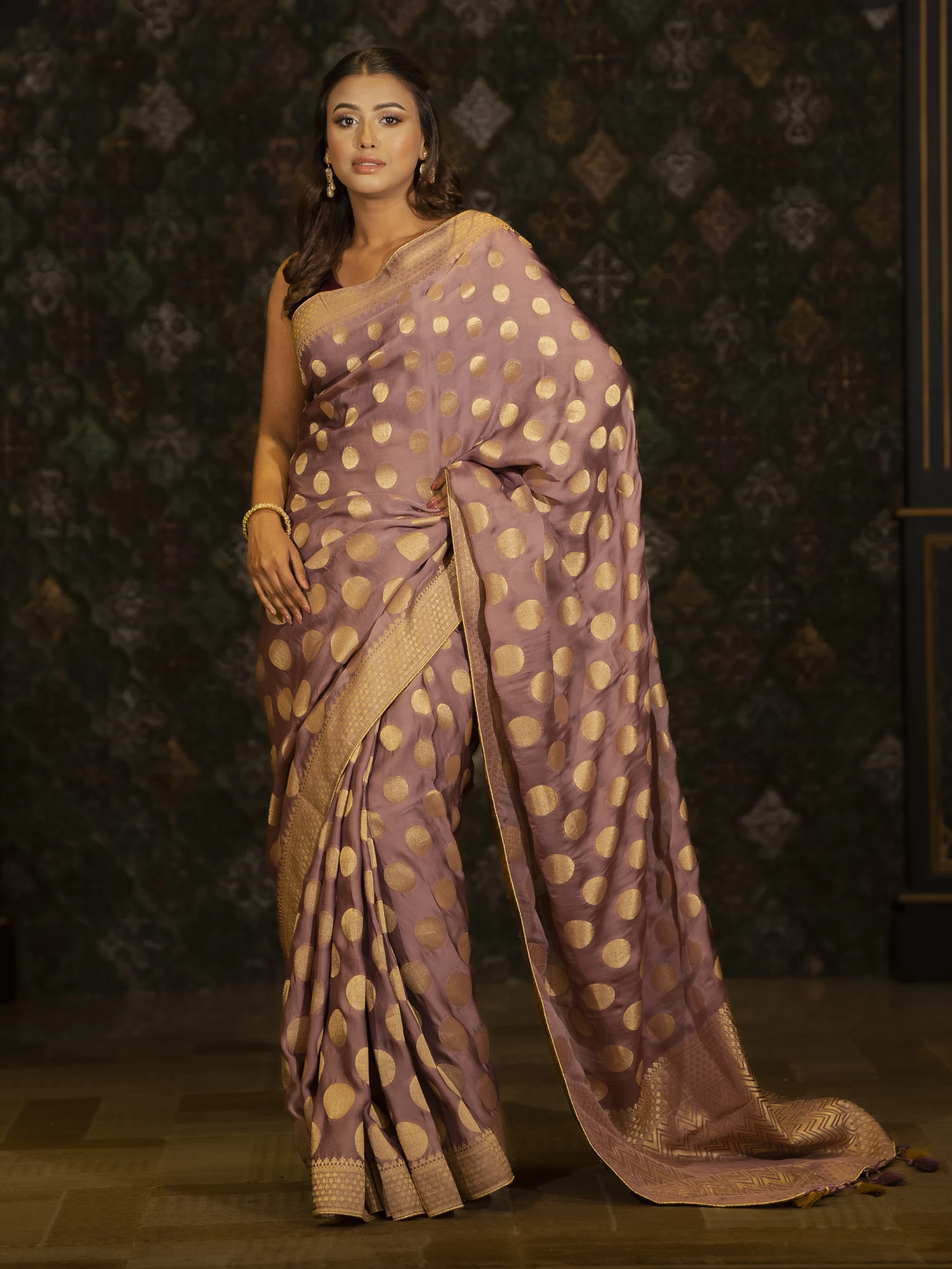 Borders: The saree may feature delicate, contrasting borders with detailed embroidery or metallic Jari accents. These can either be bold or more subtle, depending on the craftsmanship.