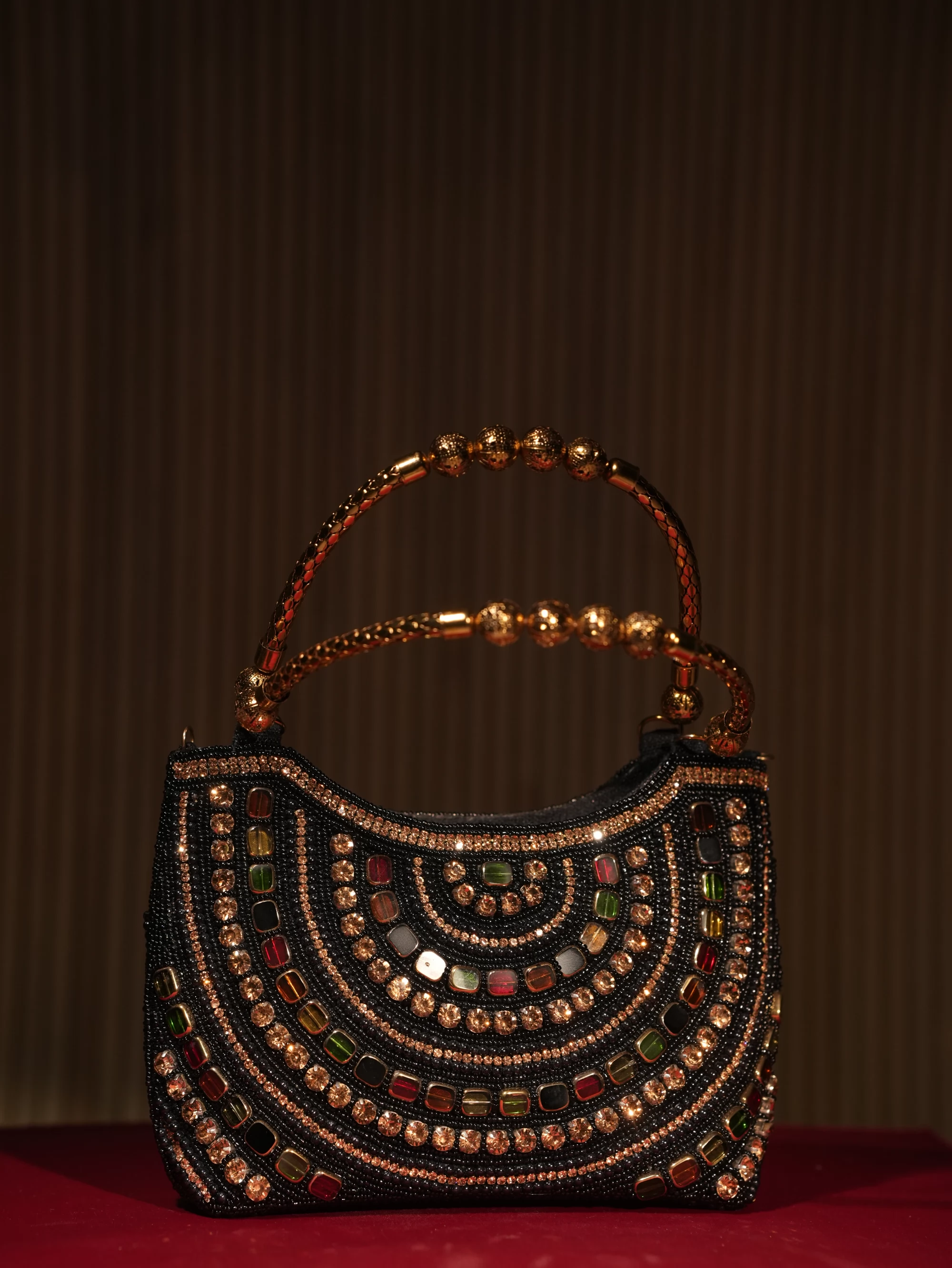 Muti color stone work ladies purse, perfectly matched with your Dress