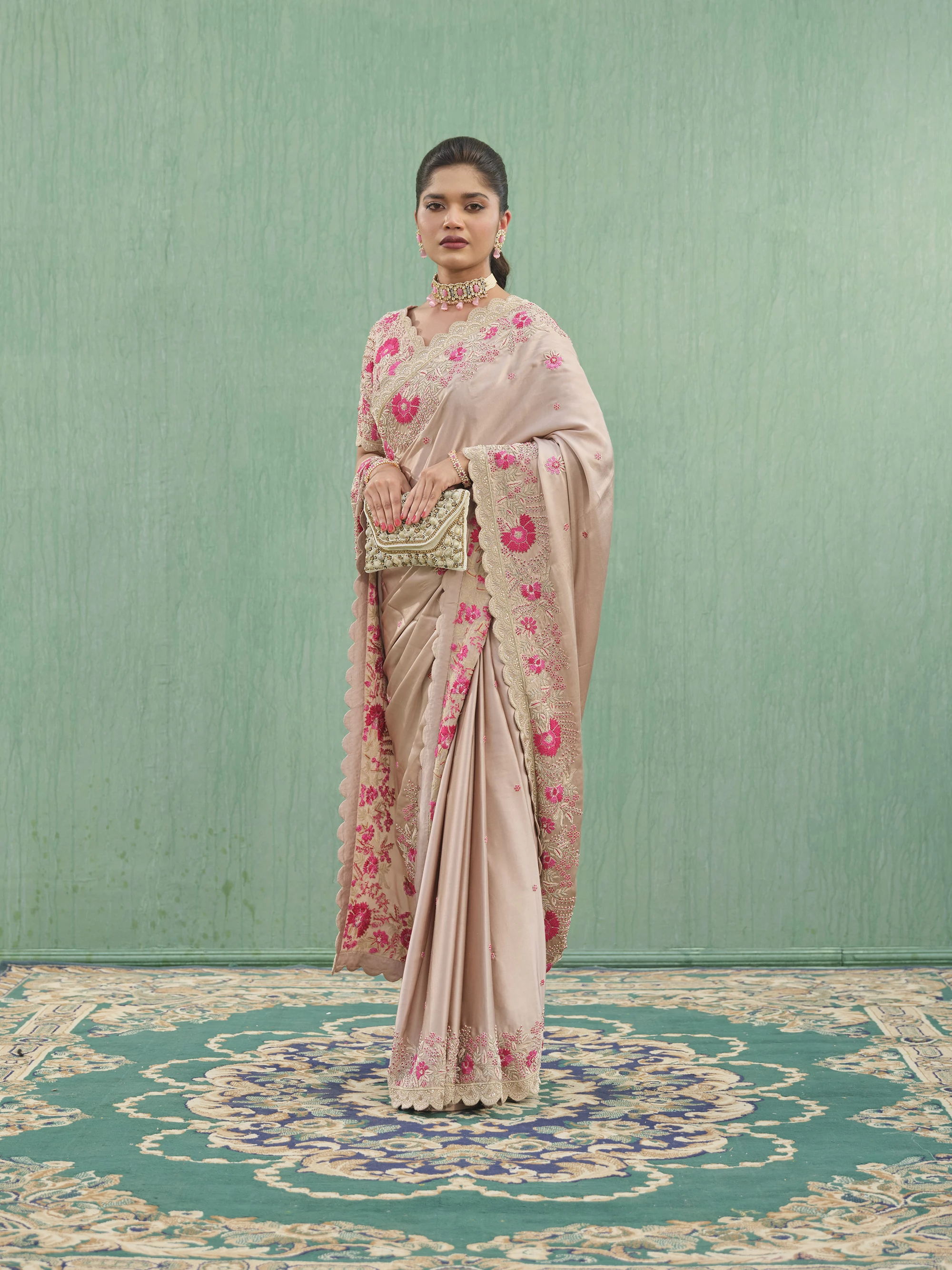 Wonderful looking peach gold color silk saree. This party wear crafted and styled with goegeous looking jori suta to make it a masterpiece. This gorgeous masterpiece will make you