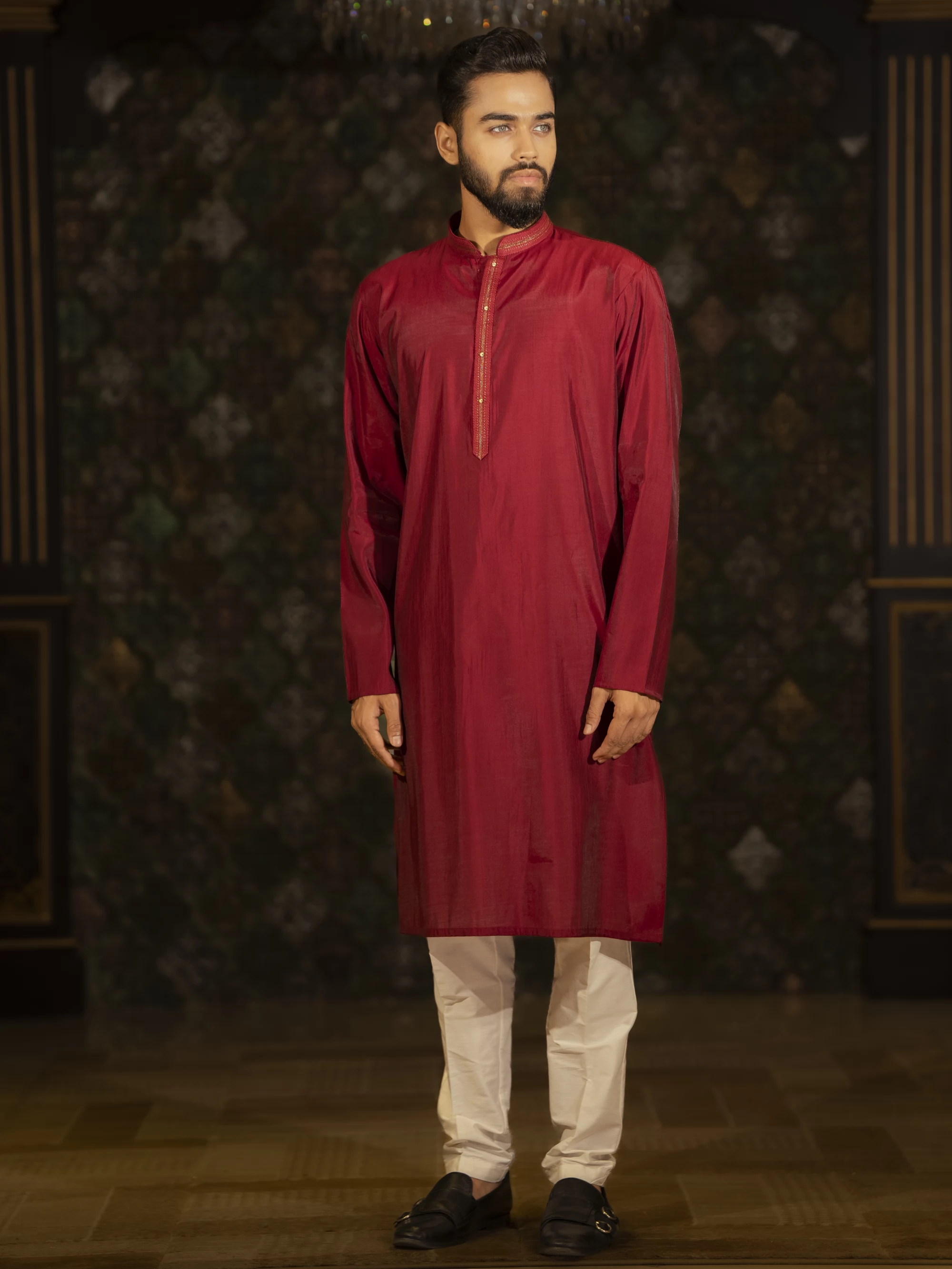 Homepage Panjabi Gorgeous Maroon Color Casual Wear Cotton Panjabi