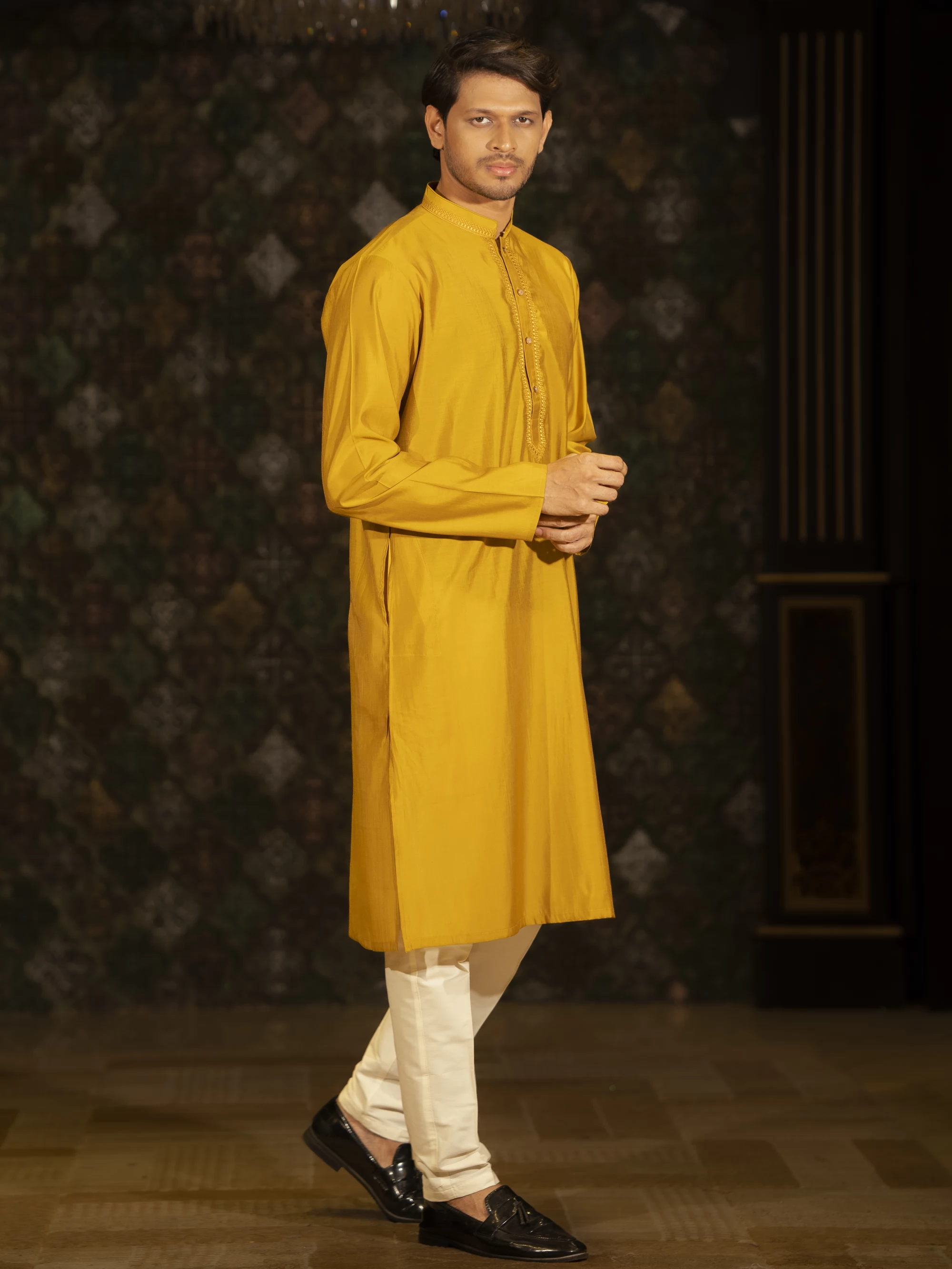 • Yellow could be the dominant base color for the panjabi, bringing warmth and brightness.